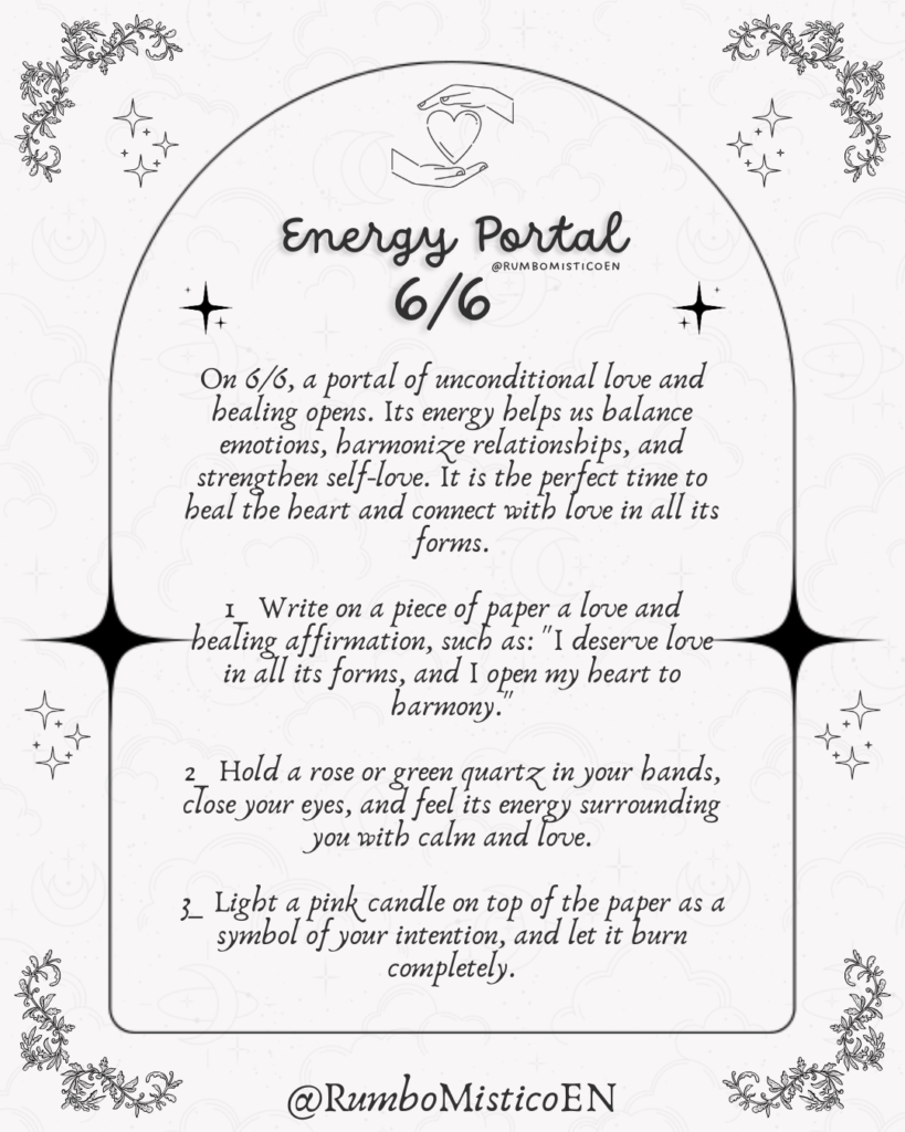 The number six is deeply connected to the heart, family, and emotional care. Accordingly, the 6/6 portal supports the healing of relationships, forgiveness, and the cultivation of self-love.