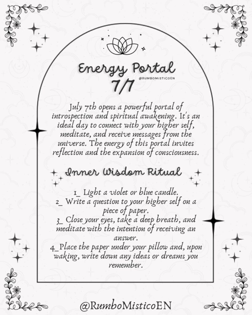 During this time, practices such as meditation, conscious silence, and inner observation become especially powerful. In contrast to more active portals, this energy is subtle and reflective, inviting you to listen more and do less.